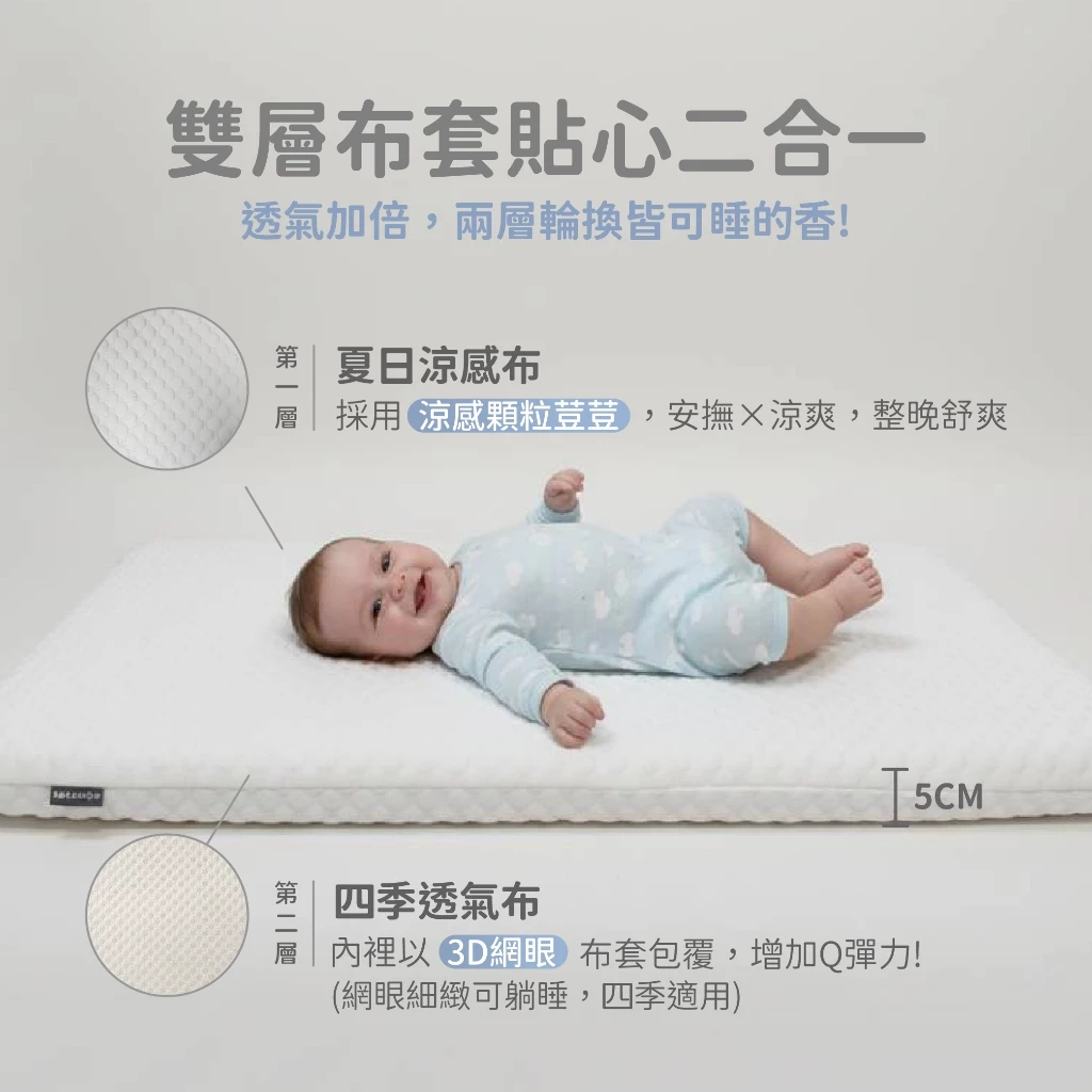 【產品】: 【二合一】4D透氣涼感水洗嬰兒床墊