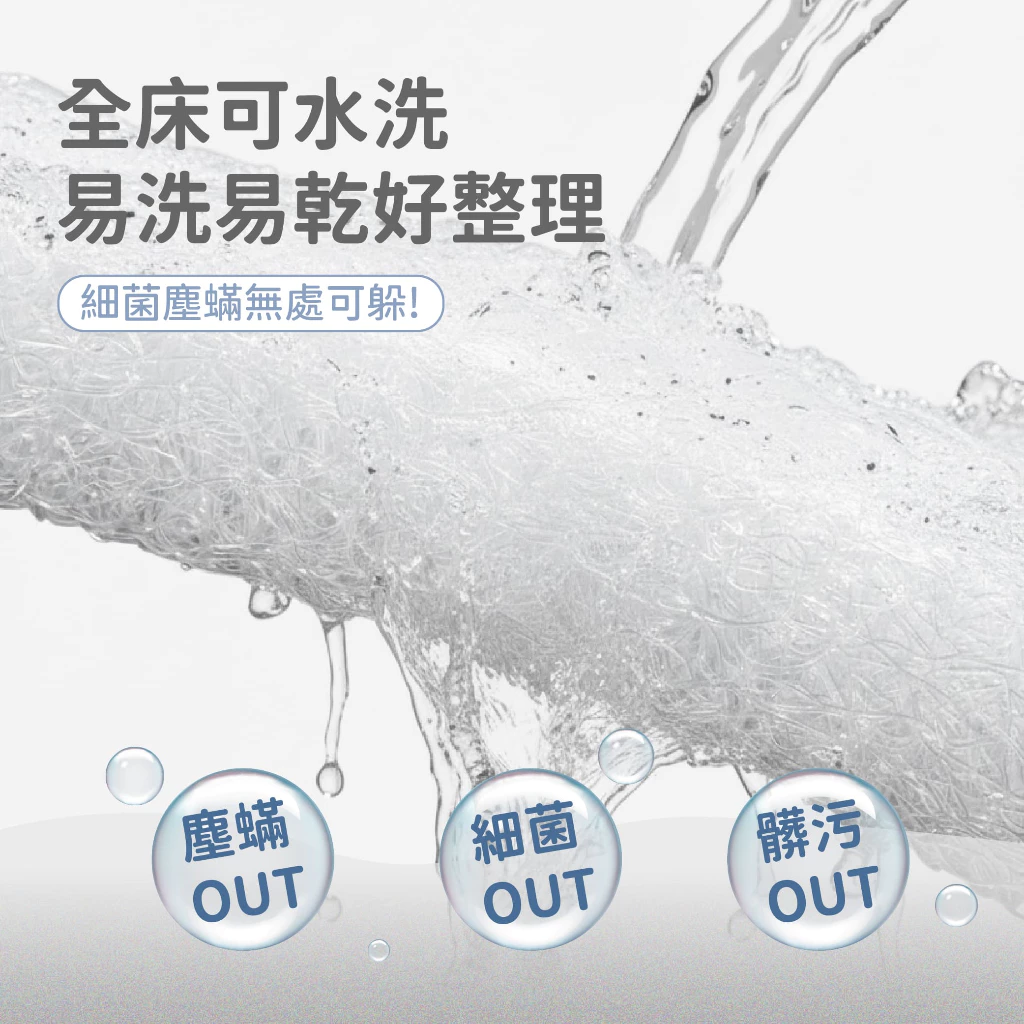 ✔️全床布套、內芯皆防蟎、抗菌、可水洗,快洗速乾