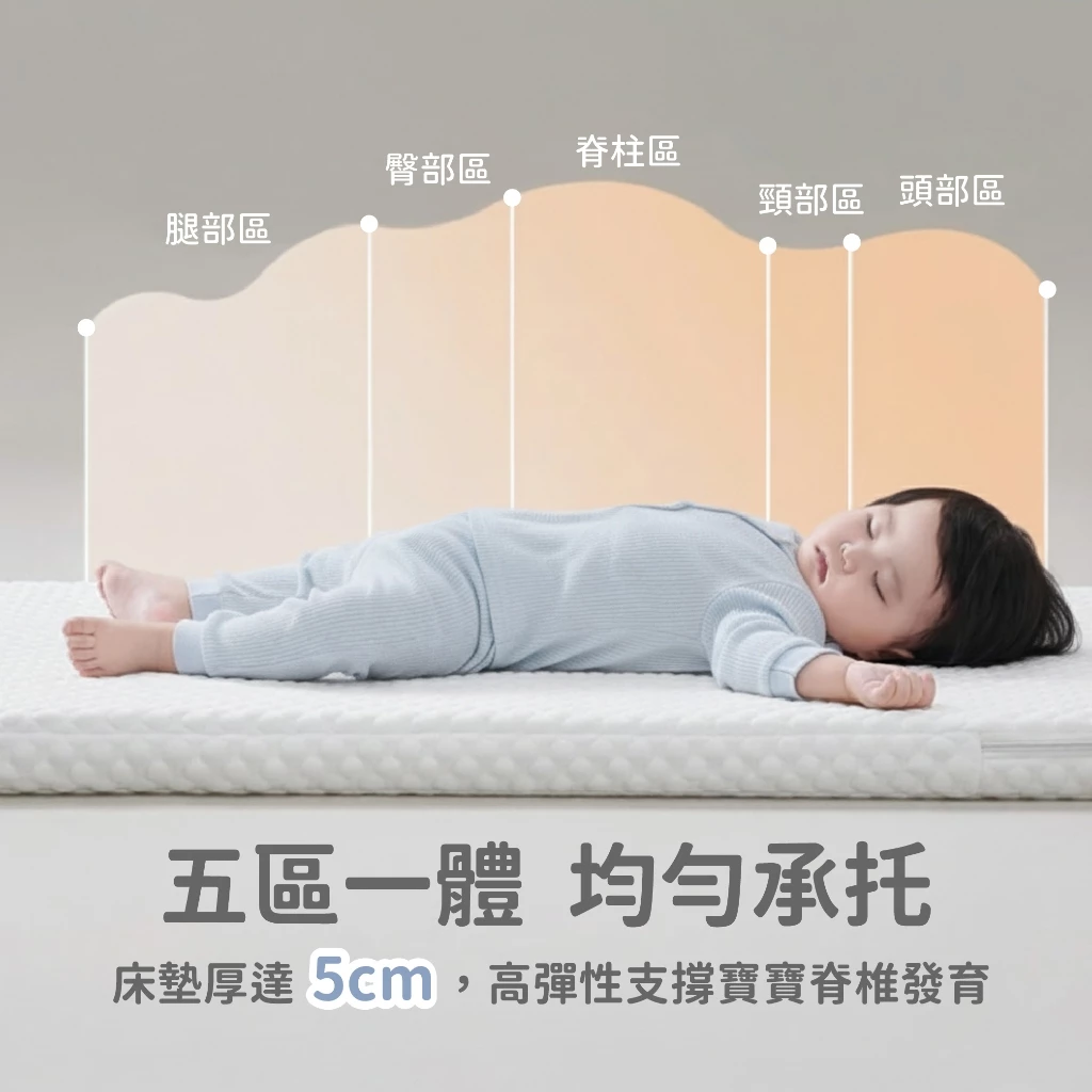✔️本床墊厚達約5cm,軟硬適中,均勻承重,守護寶寶脊椎發育